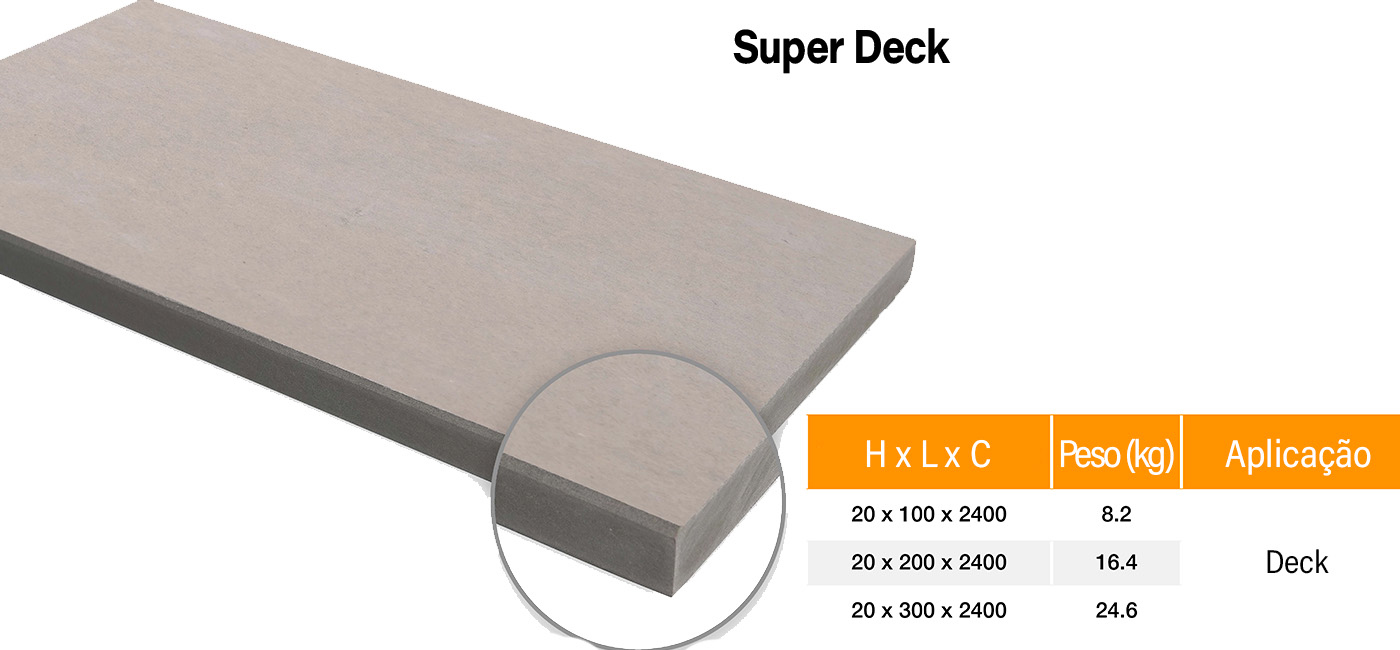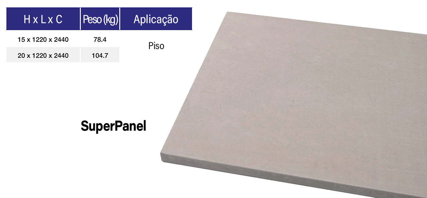 Superpanel é um dos produtos ue pode ser aplicado em pisos com borda quadrada em ambos os lados e superfície lisa. A espessura da placa é de 15 e 20 mm por isso é forte e segura para usar no chão.